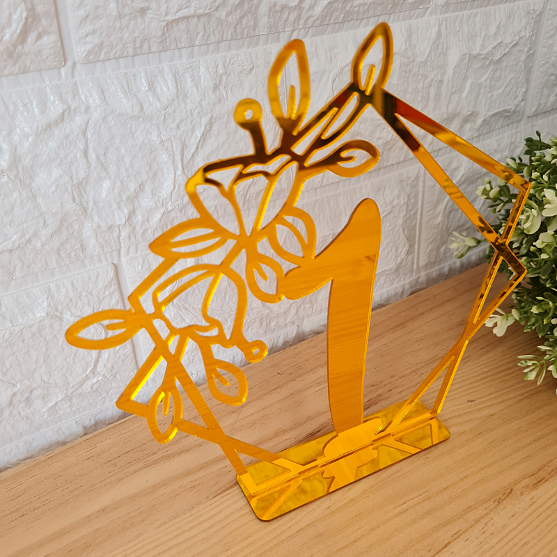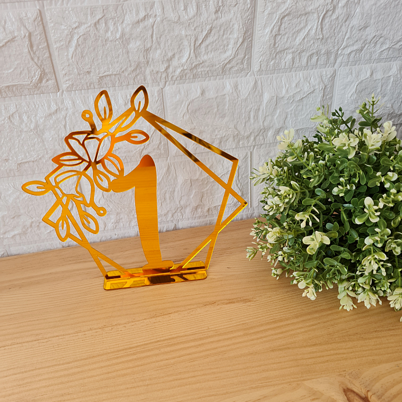 Decoración de metacrilato de espejo dorado. Para centros de mesas. Da a tu evento un toque especial y original con estas cucadas!.