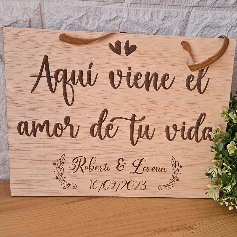 Cartel muy bonito y elegante donde llevará algún pequeño paje que lleve delante la novia hacia la ceremonia.