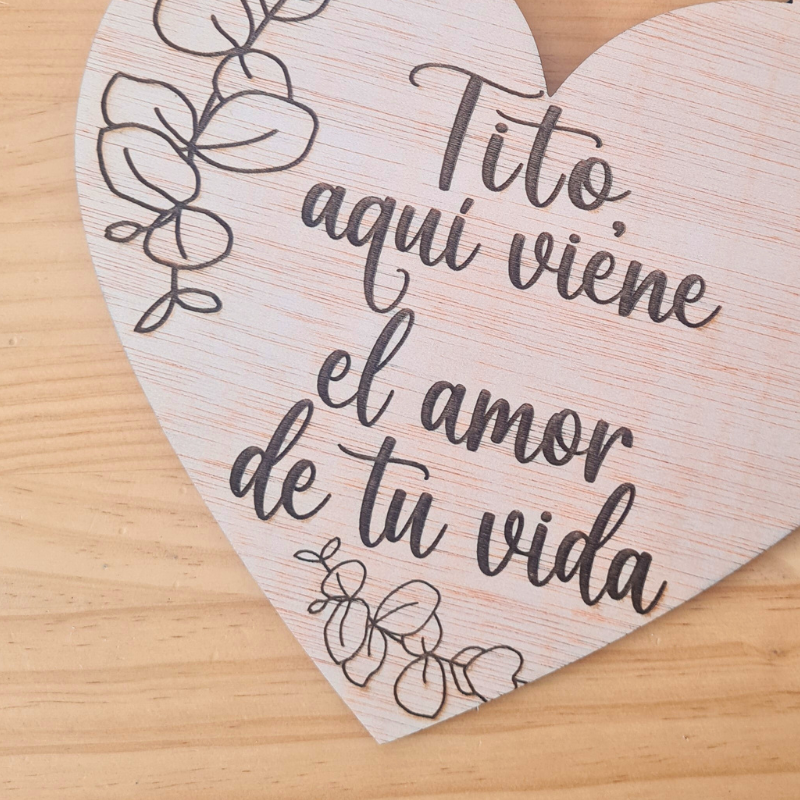 Con este cartel el novio se emocionará doblemente al ver primero a su sobrino/a y luego al ver a la mujer de su vida.