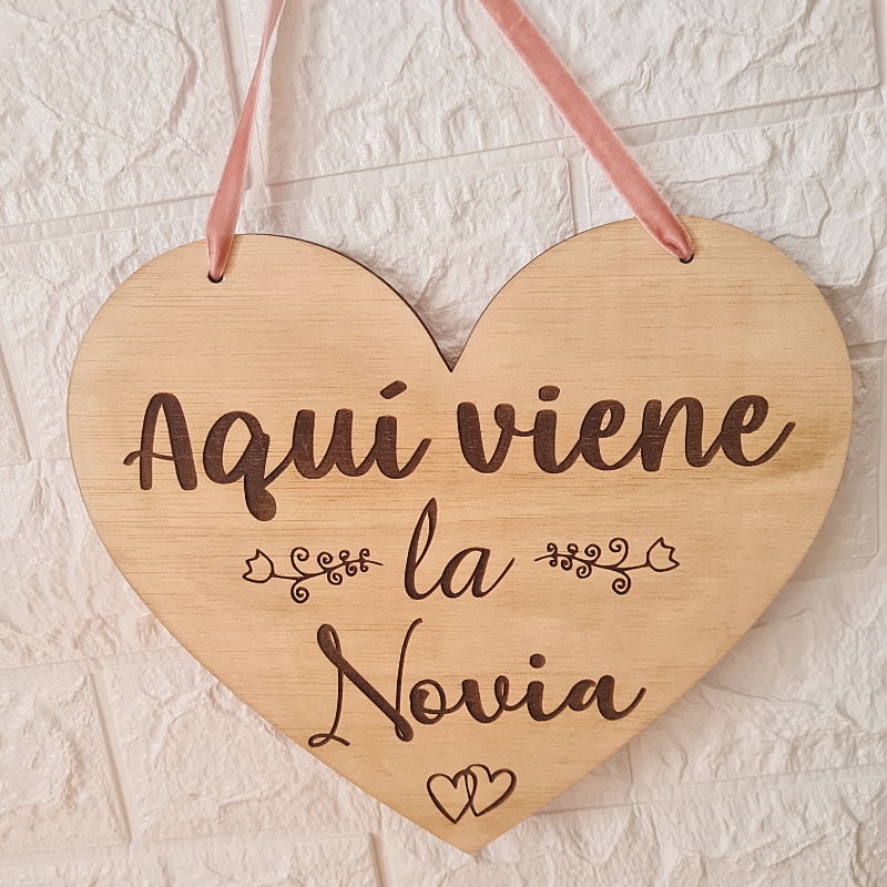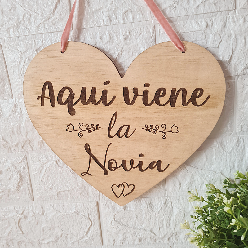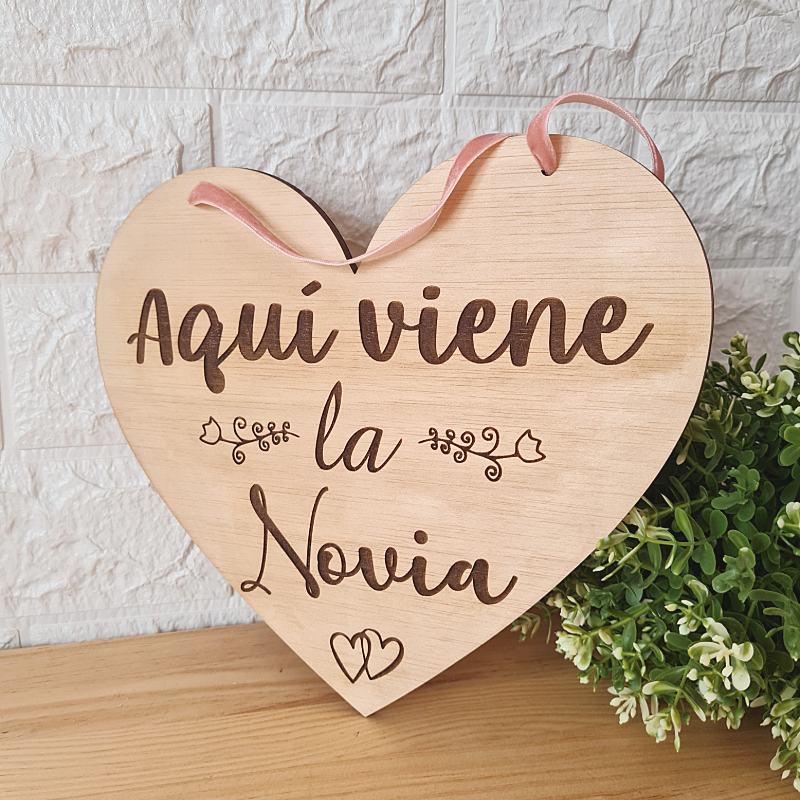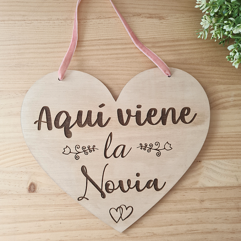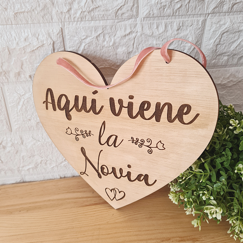 Cartel para boda “Aquí viene la novia”. Una forma original de anunciar la llegada de la gran protagonista a la ceremonia.