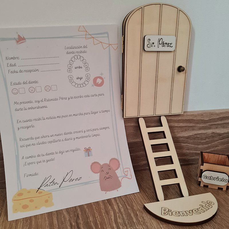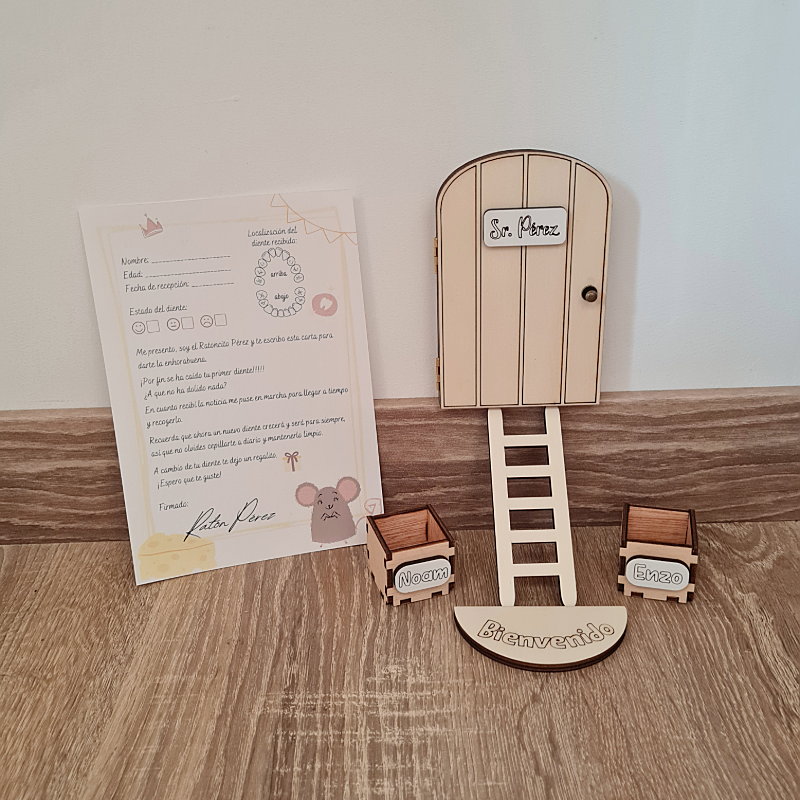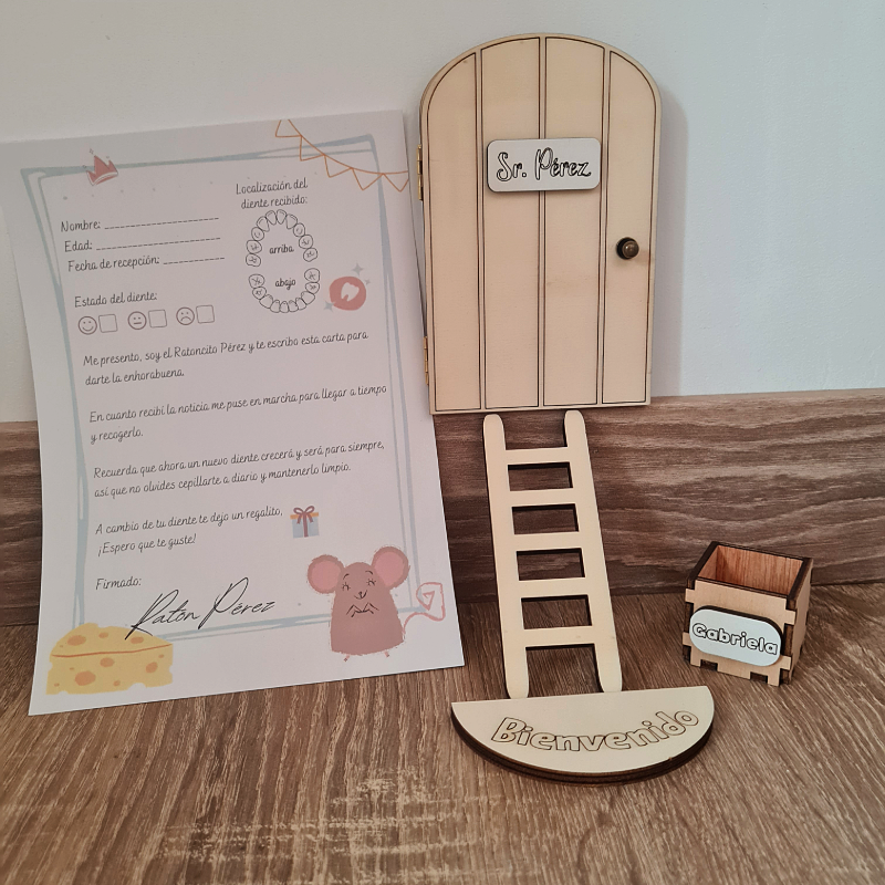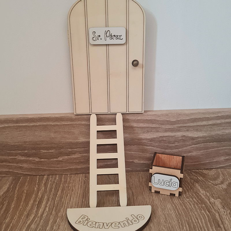 La Puerta Ratón Pérez personalizada no es un juguete. Contiene piezas pequeñas que pueden representar un riesgo para los niños más pequeños si son manipuladas sin supervisión.